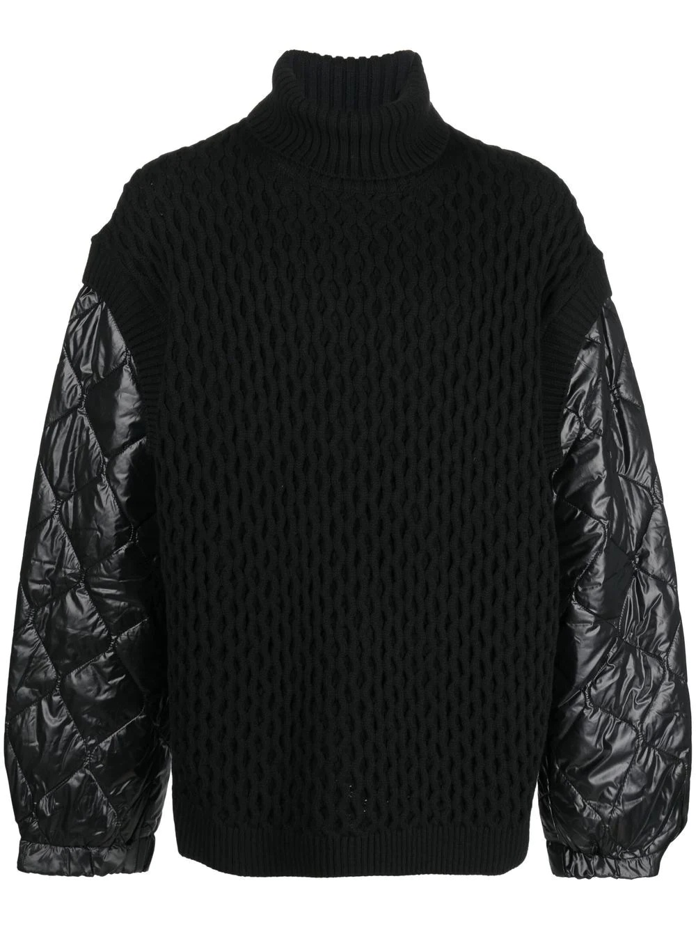 panelled wool jumper black wool quilted panels knitted construction roll neck long sleeves straight hem Imported Composition Outer: Wool 100%, Polyester 100% Lining: Polyester 100% SIZE & FIT Model measurements Height 6 ft 1 in(1.85 m) Bust/Chest 37.79 in(96 cm) Hips 37.4 in(95 cm) Waist 30.7 in(78 cm) Measurement CHEST 51.18 in(130 cm) SLEEVE LENGTH 25.19 in(64 cm) Shoulder Width 23.62 in(60 cm) LENGTH 29.92 in(76 cm) FittingInformation This piece fits true to size. We recommend you get your regular size Cut for a loose fit Made with a mid-weight fabric