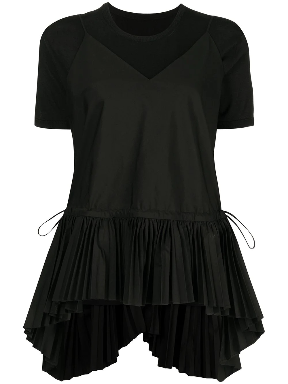 pleated-hem T-shirt black layered details pleat detailing side tie fastening round neck short sleeves Imported Composition Rayon 75%, Nylon 25% SIZE & FIT Model measurements Height 5 ft 11 in(1.8 m) Bust/Chest 28.34 in(72 cm) Hips 35.43 in(90 cm) Waist 23.62 in(60 cm) FittingInformation This piece fits true to size. We recommend you get your regular size Cut for a loose fit Made with a mid-weight fabric Washing instructions Dry Clean Only