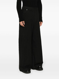 waist-straps wide-leg trousers Highlights - Black - Cotton blend - Panelled design - Belt loops - Classic five pockets - Adjustable rear waist straps - Wide leg - Front button and zip fastening Imported Composition Cotton 98%, Polyurethane 2% SIZE & FIT Model measurements Height 6 ft 1 in(1.86 m) Bust/Chest 37.4 in(95 cm) Hips 36.22 in(92 cm) Waist 29.52 in(75 cm) FittingInformation Designed with a wide leg, offering a loose and roomy fit Made from a midweight stretch fabric, this piece offers elasticity and flexibility when worn This piece fits true to size – take your usual size