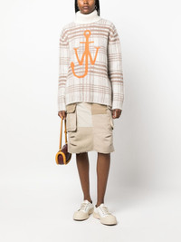 Anchor-jacquard checked jumper JW Anderson's signature Anchor motif takes centre stage at the front of this jumper, knit with chunky orange threads for a dose of textural contrast. The roll-neck design is crafted from a sumptuous blend of wool and mohair and features a tartan check pattern in white and beige. Highlights - Off-white/brown - Wool-mohair blend - Knitted construction - Tartan check pattern - Signature jw-initials anchor logo - Roll neck - Drop shoulder - Long sleeves - Ribbed trim - Straight hem - When buying this unisex item, keep in mind that it is graded in standard men's sizing Made in Italy Composition Nylon 40%, Wool 30%, Mohair 30% Washing instructions Dry Clean Only