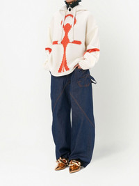 Anchor Logo merino hoodie white/dark orange knitted construction ribbed trim intarsia knit drawstring hood long sleeves straight hem Imported Composition Merino 100%