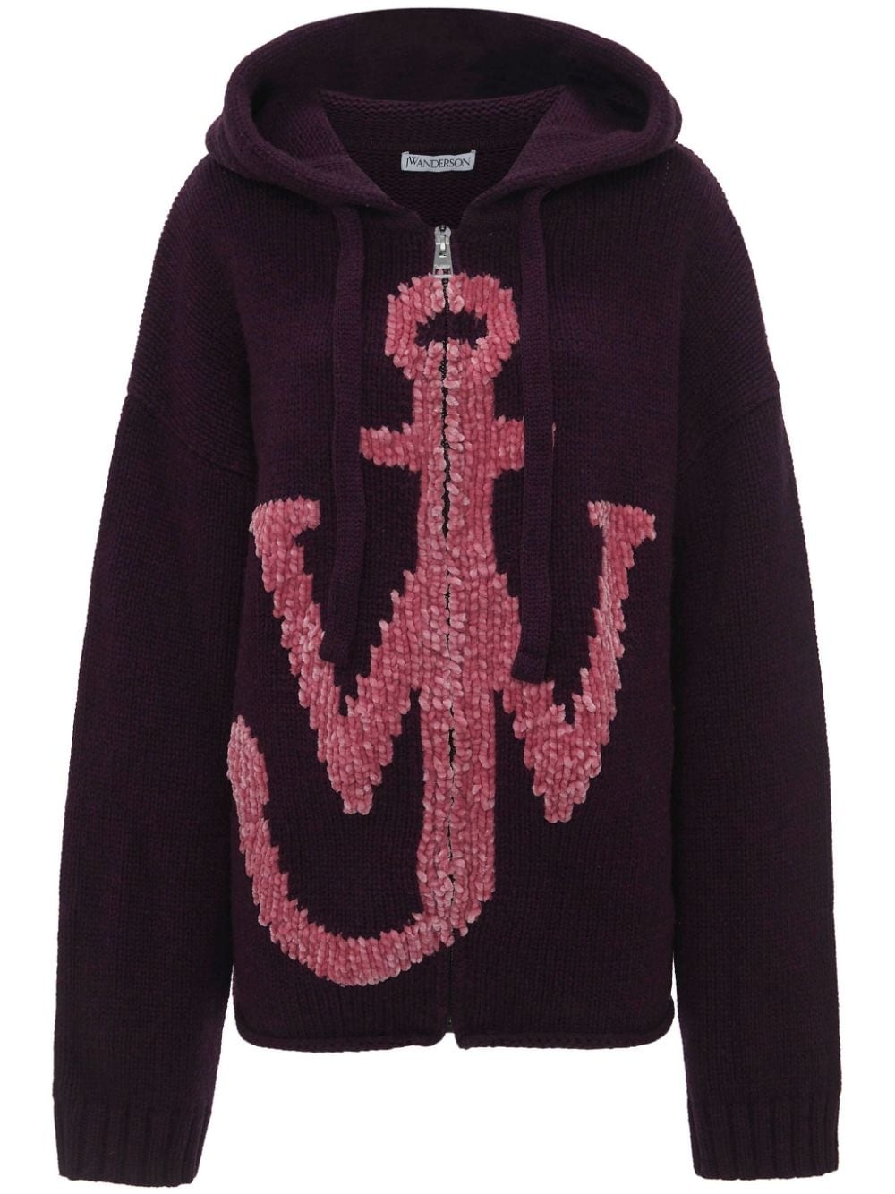 anchor-logo zip hoodie Highlights - Plum purple - Merino wool - Knitted construction - Signature jw-initials anchor logo - Drawstring hood - Front zip fastening - Drop shoulder - Long sleeves - Ribbed cuffs - Straight hem Imported Composition Merino 100% Washing instructions Dry Clean Only