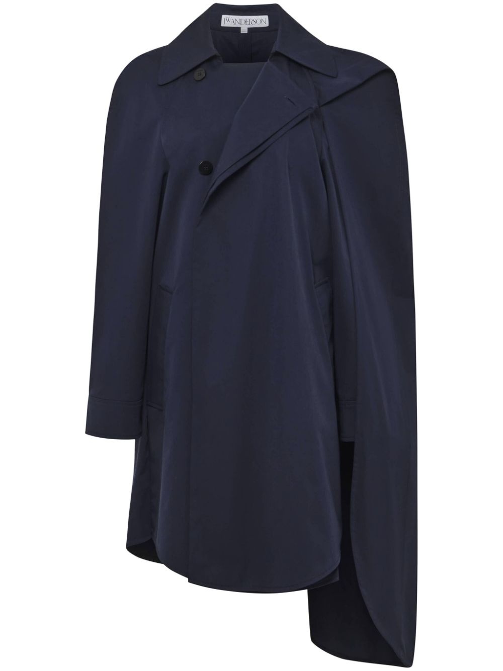 asymmetric cape coat Highlights - Navy blue - Double-breasted button fastening - Two side flap pockets - Long raglan sleeves - Cape design Imported Composition Lining: Cotton 100% Outer: Cotton 100%