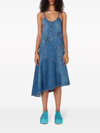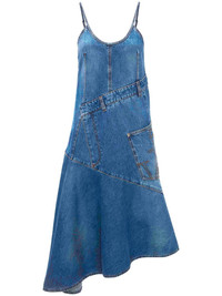 asymmetric cotton denim dress Highlights - Navy blue - Cotton - Denim - Patchwork design - Deconstructed design - Logo patch to the rear - Round neck - Rear zip fastening - Adjustable spaghetti straps - Below-knee length - Asymmetric hem Made in Italy Composition Cotton 100% Washing instructions Read Manufacturer Guidelines