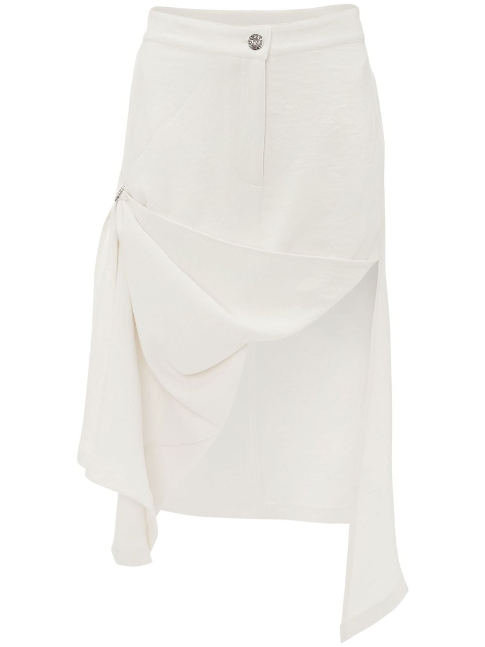 asymmetric draped skirt off-white crystal embellishment high waist front button and zip fastening asymmetric hem mid-length Imported Composition Polyester 100%