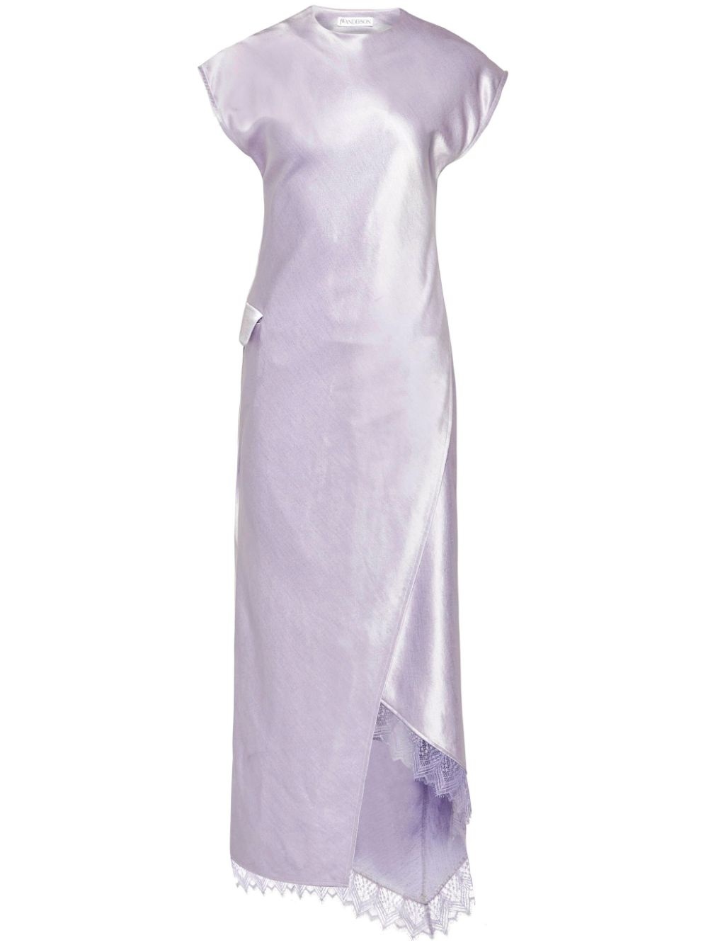 asymmetric lace-trim dress Highlights - Lilac purple - Satin finish - Asymmetric hem - Lace trim - Round neck - Cap sleeves Imported Composition Triacetate 74%, Polyester 26%
