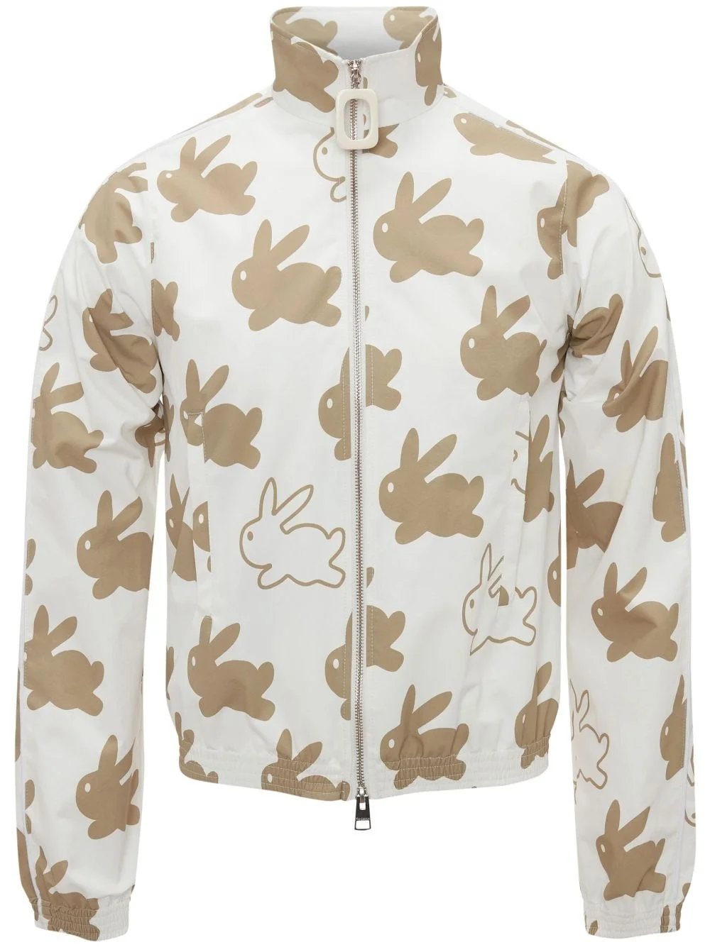 bunny-print technical jacket Highlights - Ivory white/beige - Animal print - High neck - Front zip fastening - Long sleeves - Two side slit pockets - Elasticated hem - When buying this unisex item, keep in mind that it is graded in standard men's sizing Imported Composition Nylon 100%