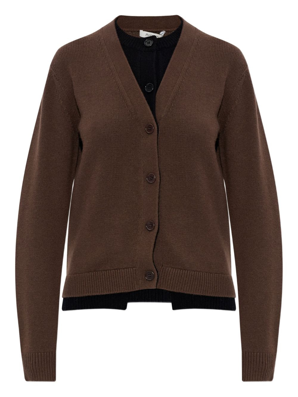 button-front wool cardigan Highlights - Brown - V-neck - Button fastening - Ribbed trims - Wool material Imported Composition Wool 100% Washing instructions Read Manufacturer Guidelines
