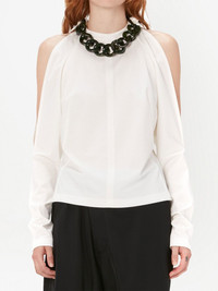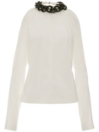 chain-embellished cold-shoulder top white/black stretch-design chain-link embellishment cold-shoulder design round neck long sleeves straight hem Imported Composition Viscose 50%, Polyamide 39%, Elastane 11%