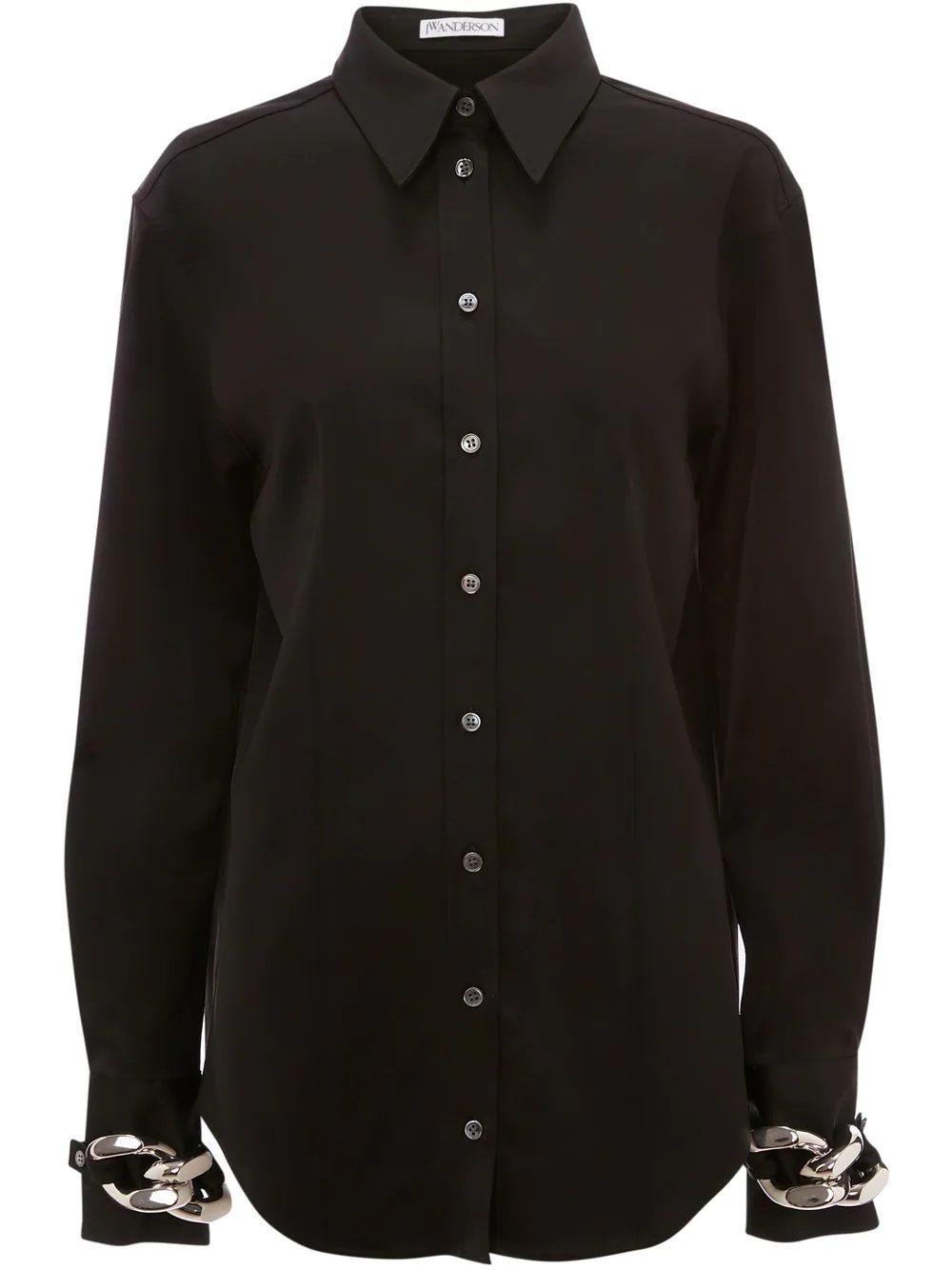 chain-link cuff shirt JW Anderson elevates a classic silhouette with this black shirt. Decorated with silver chain-link detailing to the cuffs, this intriguing design boasts a contemporary finish. Imported Composition Cotton 100%