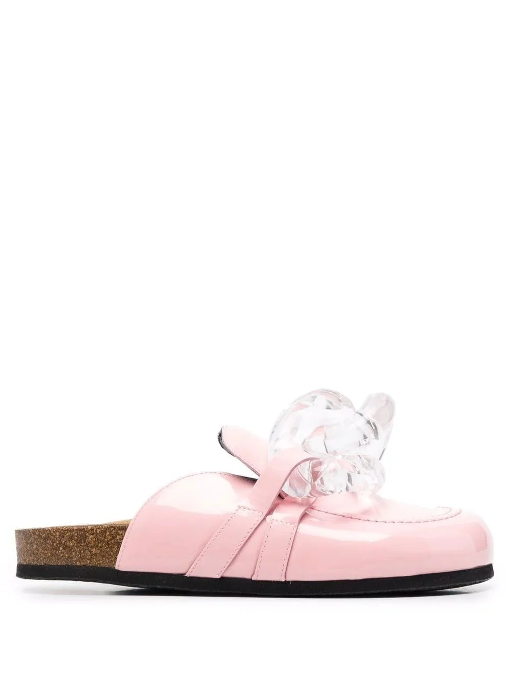 Chain loafer mules First seen in the Autumn Winter '20 runway show, these loafer mules from JW Anderson combine both style and comfort. Crafted from pink leather, the slip-on pair are punctuated by the oversized chain-link detail. Imported Composition Lining: Sheepskin 100% Sole: Rubber 100% Outer: Calf Leather 100% SIZE & FIT Measurement HEEL 0.78 in(2 cm) Sole height 0.59 in(1.5 cm)