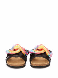 Chain slip-on slides black/multicolour calf leather/sheepskin leather lining chain-link detailing open toe slip-on style single toe strap branded insole flat sole Imported Composition Outer: Calf Leather 100% Sole: Leather 100% Lining: Sheepskin 100% SIZE & FIT FittingInformation This piece fits true to size. We recommend you get your regular size This piece has a wide fit. For those with a narrow foot, get the next size down