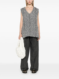 chevron-knit top Highlights - Black/white - Lamb wool blend - Chevron knit - V-neck - Sleeveless - Short side slits - Straight hem Imported Composition Lambs Wool 81%, Polyamide 19% SIZE & FIT Model measurements Height 5 ft 9 in(1.75 m) Bust/Chest 31.88 in(81 cm) Hips 34.64 in(88 cm) Waist 24.01 in(61 cm) FittingInformation Designed to be unstructured, offering a loose fit throughout Made with a midweight knit, this piece offers some stretch