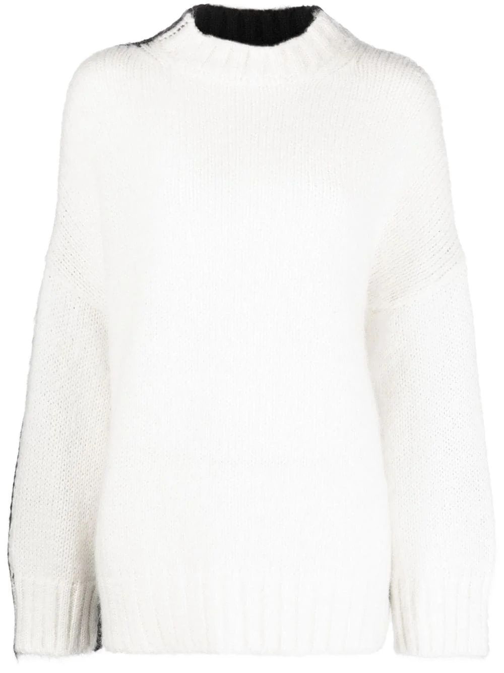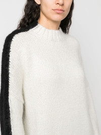 colour-block crew-neck jumper Highlights - White/black - Colour-block design - Two-tone design - Knitted construction - Crew neck - Long sleeves - Drop shoulder - Ribbed cuffs and hem - Straight hem Made in United Kingdom Composition Acrylic 35%, Polyamide 28%, Mohair 27%, Cotton 10% SIZE & FIT Model measurements Height 5 ft 10 in(1.79 m) Bust/Chest 33.07 in(84 cm) Hips 35.82 in(91 cm) Waist 24.01 in(61 cm) FittingInformation Designed to be unstructured, offering a loose fit throughout Made with a midweight knit, this piece offers some stretch This piece fits true to size – take your usual size Washing instructions Dry Clean Only
