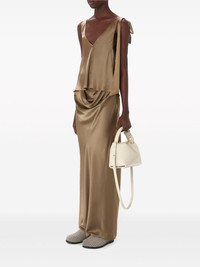 cowl-effect silk maxi skirt Highlights - Light olive green - Silk satin - High-waisted - Cowl effect - Curved hem - Long length Imported Composition Silk 100%