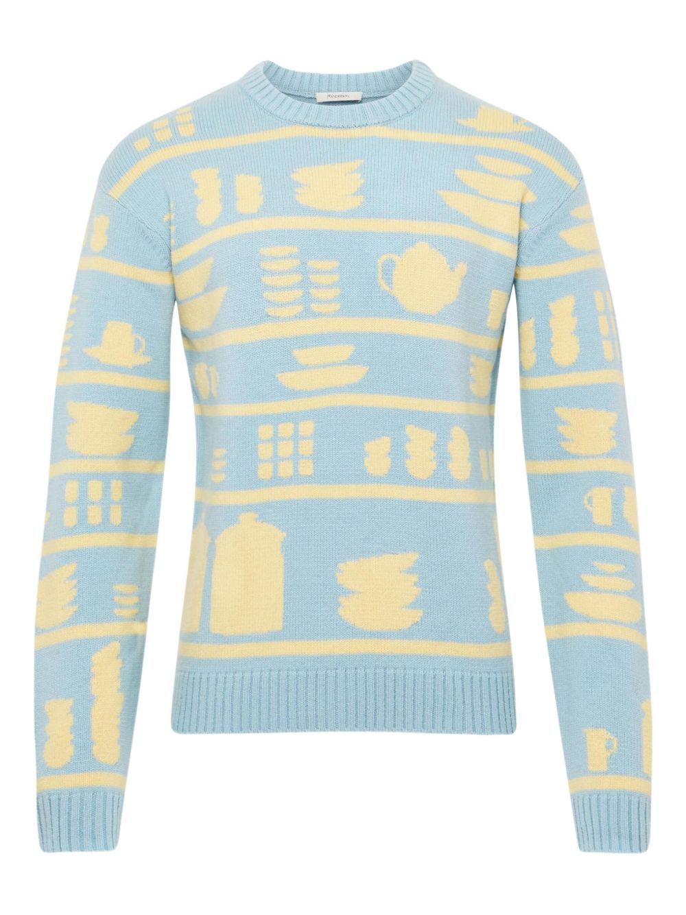 crockery-jacquard jumper Highlights - Pale blue - Crew neck - Long sleeves - Knitted Imported Composition Cotton 100% Washing instructions Read Manufacturer Guidelines