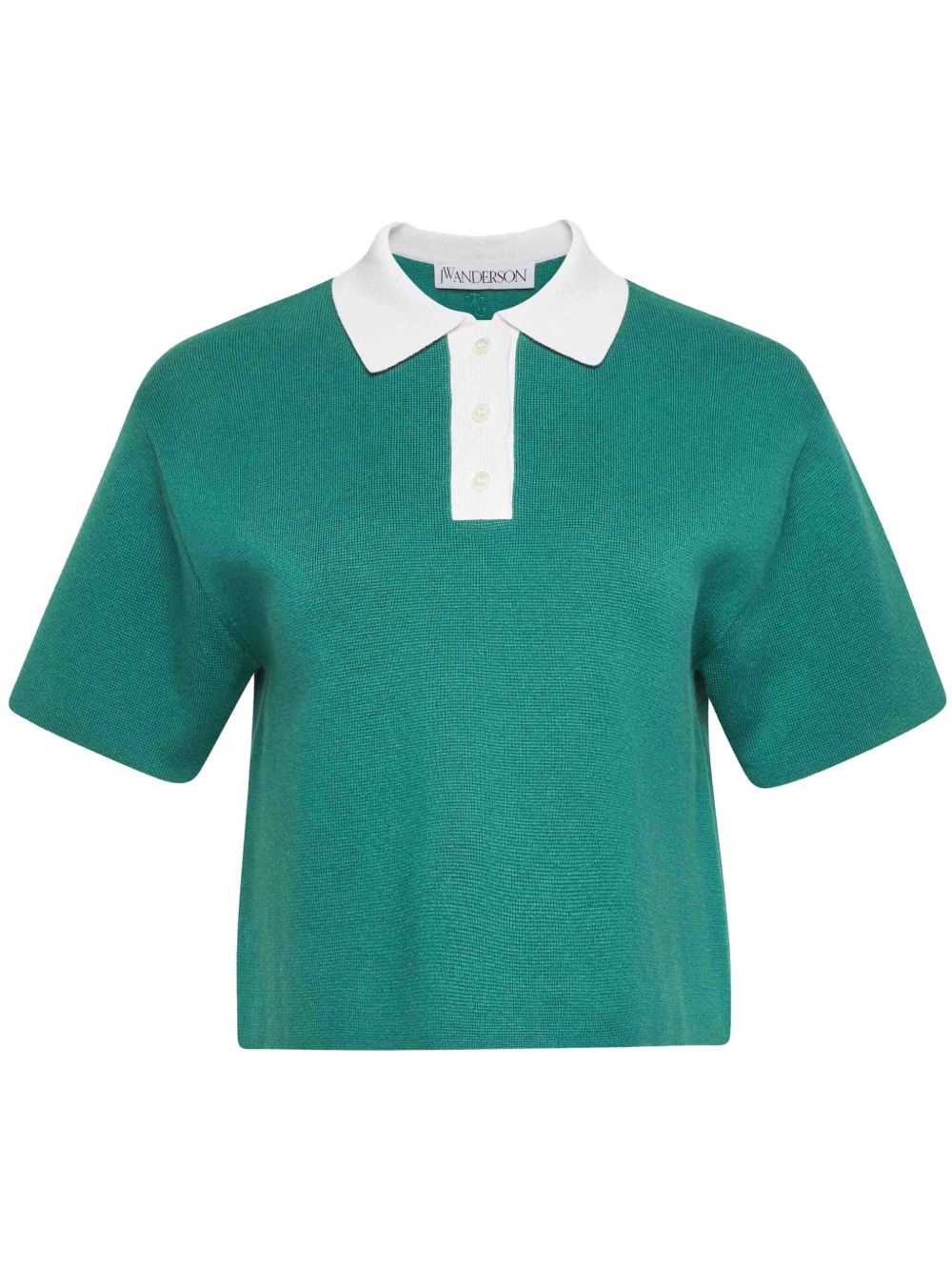 cropped polo shirt Highlights - Green - Front button placket - Polo collar - Drop shoulder - Cropped Imported Composition Cotton 95%, Elastane 5% Washing instructions Dry Clean Only