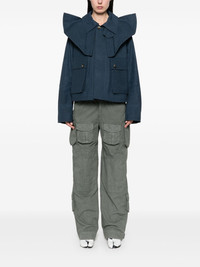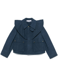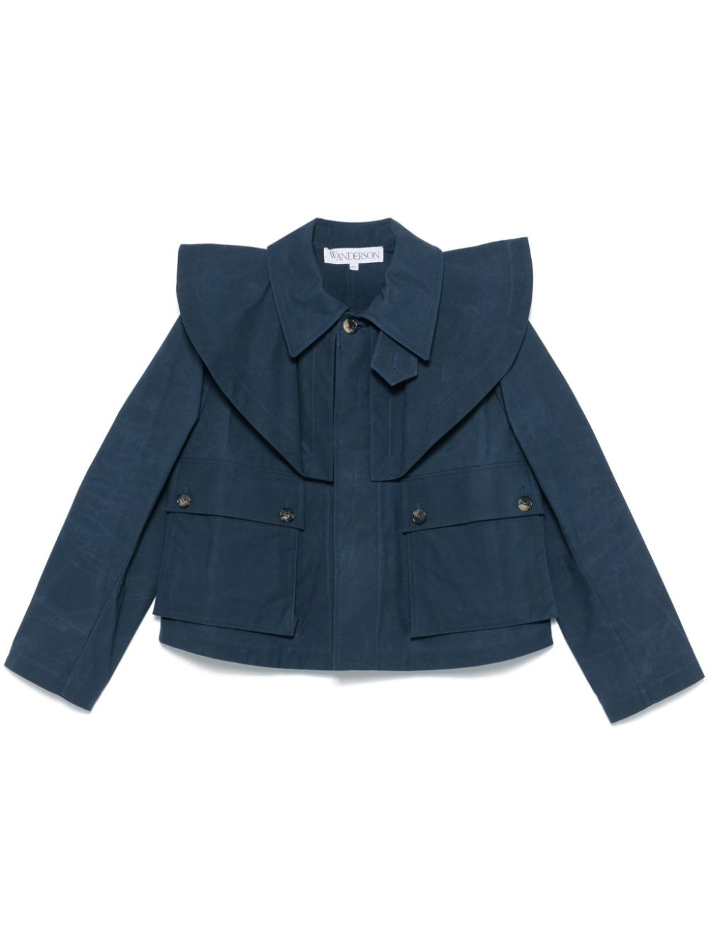cropped trench jacket Highlights - Indigo blue - Concealed front button fastening - Two side flap pockets - Oversized pointed collar - Long sleeves Imported Composition Cotton 100% SIZE & FIT Model measurements Height 5 ft 10 in(1.78 m) Bust/Chest 33.46 in(85 cm) Hips 36.22 in(92 cm) Waist 23.22 in(59 cm) FittingInformation Designed to be unstructured, offering a loose fit throughout Made from a midweight non-stretch fabric