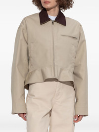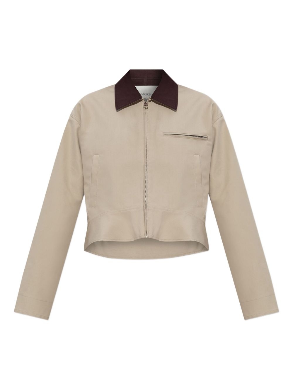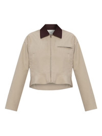 cropped zip-front jacket Highlights - Beige - Zip front - Contrast collar - Welt pocket - Cropped hem - Long sleeves Imported Composition Cotton 100% Washing instructions Read Manufacturer Guidelines
