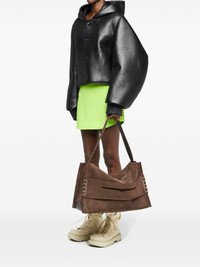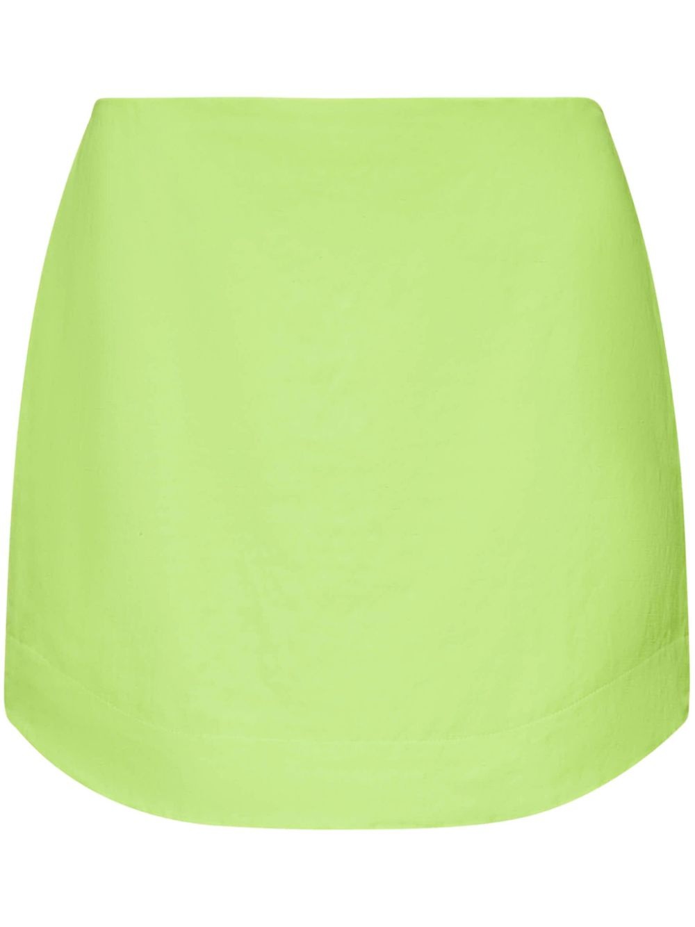 curved-hem mini skirt Highlights - Lime green - Curved hem - Rear zip fastening - Embroidered logo to the side - Thigh-length Imported Composition Viscose 77%, Linen/Flax 23%