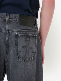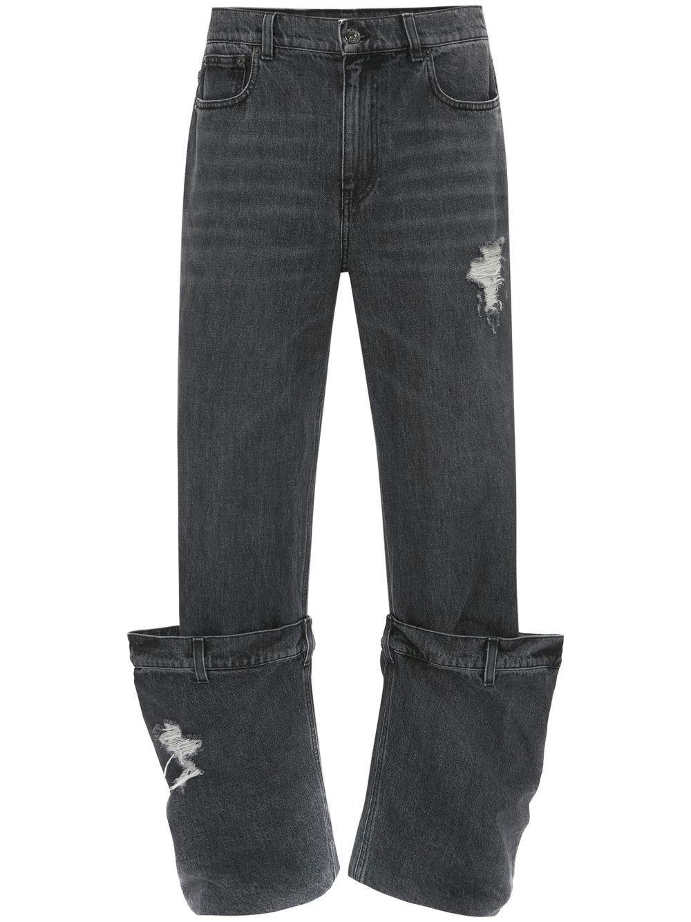 distressed Bucket jeans Highlights - Charcoal grey - Cotton - Two diagonal pockets to the sides - Two rear patch pockets - Front button and zip fastening - Whiskering effect at the thighs - Distressed effect Made in Italy Composition Lining: Polyester 65%, Cotton 35% Outer: Cotton 100%