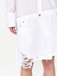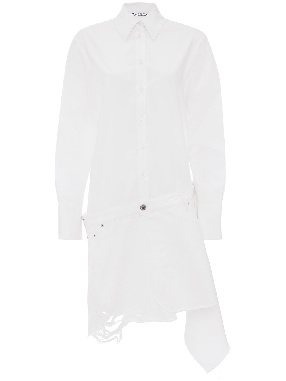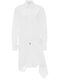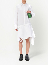 distressed-finish asymmetric shirtdress Highlights - White - Cotton - Asymmetric design - Distressed finish - Logo patch to the rear - Spread collar - Front button fastening - Long sleeves - Buttoned cuffs - Classic five pockets - Raw-cut hem Made in Italy Composition Cotton 100%