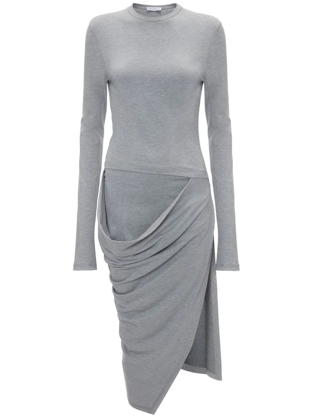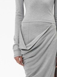 draped-detail long-sleeve dress Highlights - Light grey - Draped detailing - Round neck - Long sleeves - Side slit - Asymmetric hem Imported Composition Viscose 85%, Polyamide 14%, Elastane 1% SIZE & FIT Measurement BUST 31.49 in(80 cm) HIPS 31.49 in(80 cm) LENGTH 51.18 in(130 cm) Shoulder Width 14.96 in(38 cm) SLEEVE LENGTH 27.16 in(69 cm) WAIST 25.98 in(66 cm) Washing instructions Read Manufacturer Guidelines
