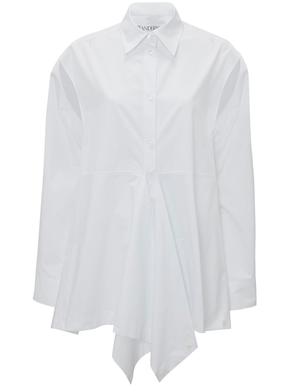 draped peplum shirt Highlights - Optical white - Cotton - Side buckle fastening - Draped detailing - Spread collar - Long sleeves - Buttoned cuffs - Front button fastening - Handkerchief hem Imported Composition Cotton 100% Washing instructions Read Manufacturer Guidelines