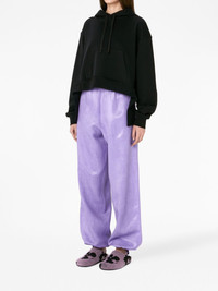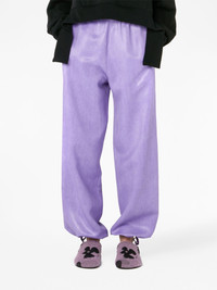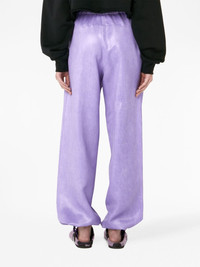 drawstring-hem wide-leg trousers Crafted to a high-shine finish in a lilac hue, these JW Anderson can transform their silhouette. Thanks to the drawstrings at the hem, the piece can be worn as a wide leg or with a tapered leg, showcasing a street-style completion. Highlights - Lilac purple - High-shine finish - Elasticated waistband - Two side slit pockets - Drawstring hem - Wide leg Made in Italy Composition Body: Viscose 50%, Acetate 50%