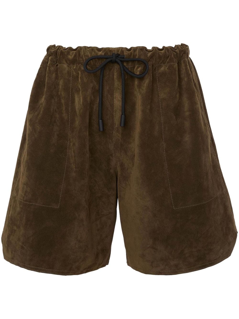 drawstring leather shorts Highlights - Olive green - Leather - High-waisted - Drawstring fastening waist - Two side inset pockets - Straight hem Made in Italy Composition Leather 100%