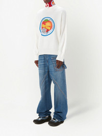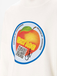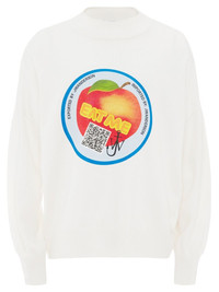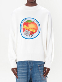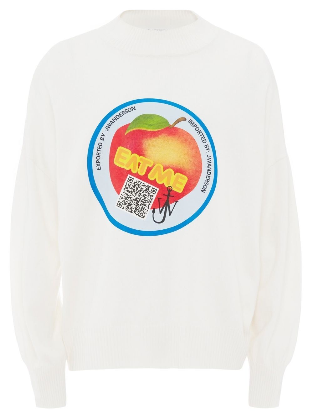 Eat Me print knit jumper Highlights - Cloud white - Merino-cashmere blend - Ribbed detailing - Eat me print - Round neck - Long sleeves - Straight hem - When buying this unisex item, keep in mind that it is graded in standard men's sizing. Imported Composition Merino 47%, Viscose 38%, Nylon 10%, Cashmere 5%