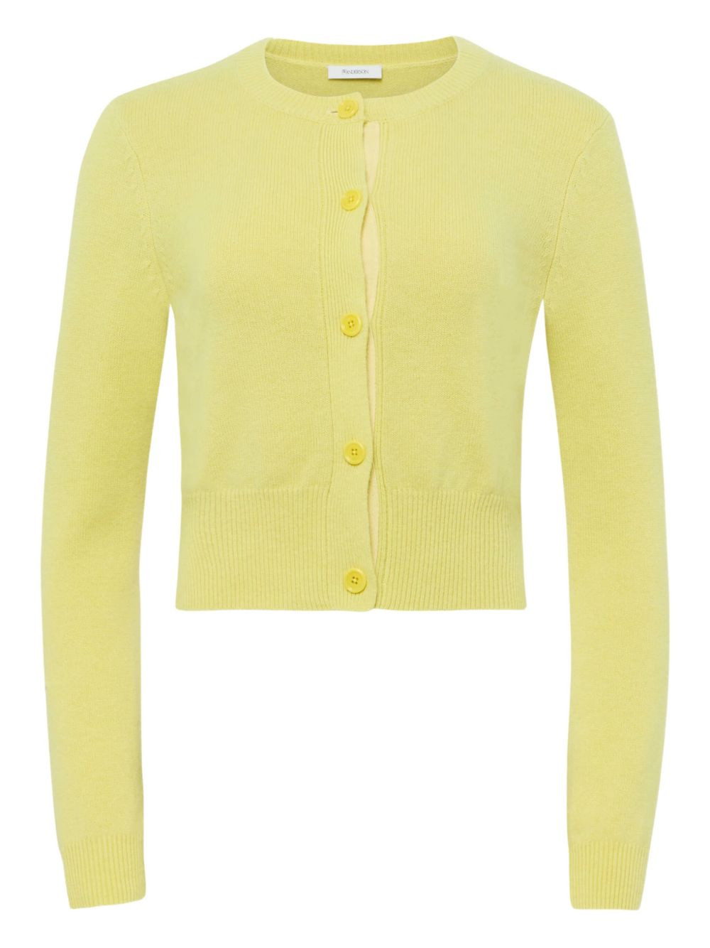 embroidered cardigan Highlights - Pale yellow - Button front - Long sleeves - Ribbed hem Imported Composition Fabric 100% Washing instructions Read Manufacturer Guidelines