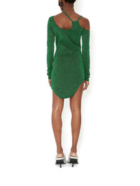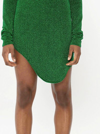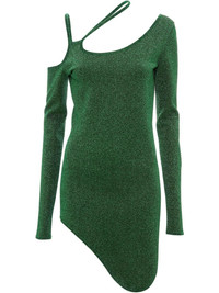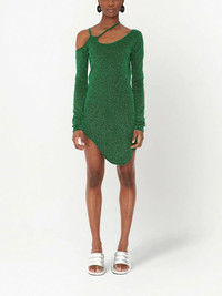glitter cut-out asymmetric dress emerald green glitter detailing cut-out detailing long sleeves asymmetric hem above-knee length Made in Italy Composition Viscose 42%, Polyester 36%, Metallic Fibre 15%, Polyamide 5%, Elastane 2%