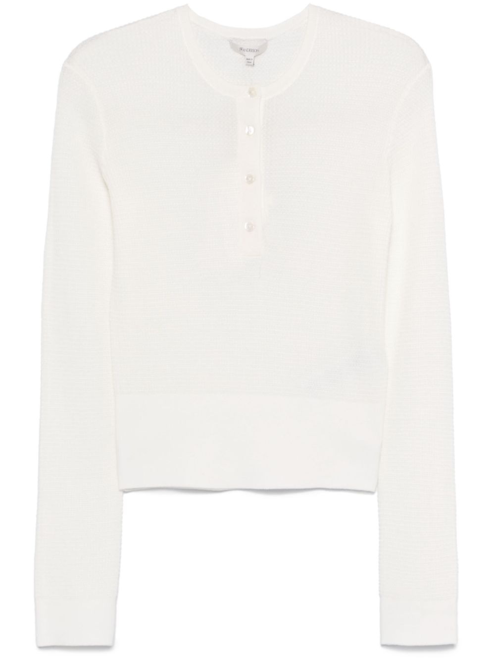henley top Highlights - White - Short front button fastening - Ribbed cuffs and hem - Crew neck - Long sleeves Imported Composition Cotton 81%, Polyamide 19% SIZE & FIT Model measurements Height 5 ft 11 in(1.8 m) Bust/Chest 32.67 in(83 cm) Hips 36.22 in(92 cm) Waist 24.4 in(62 cm) FittingInformation Designed for a slim fit that sits just away from the body offering a close yet comfortable fit Made from a midweight non-stretch fabric, this piece offers minimal elasticity when worn