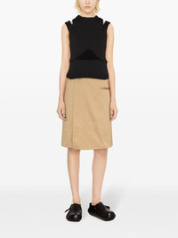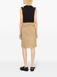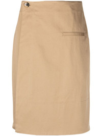 high-waist A-line miniskirt Highlights - Camel brown - Cotton - Twill weave - Embroidered logo to the rear - A-line - Wrap design - High waist - Side button fastening - Side welt pocket - Rear welt pocket - Rear slit - Straight hem - Above-knee length Imported Composition Lining: Cotton 100% Outer: Cotton 100% SIZE & FIT Model measurements Height 5 ft 10 in(1.79 m) Bust/Chest 31.49 in(80 cm) Hips 35.03 in(89 cm) Waist 23.62 in(60 cm) Measurement HIPS 39.37 in(100 cm) LENGTH 24.4 in(62 cm) WAIST 31.49 in(80 cm) FittingInformation This midi-length skirt is intended to be worn high on the waist The vented hem offers movement at the rear Made from a midweight non-stretch fabric This piece fits true to size – take your usual size Washing instructions Dry Clean Only