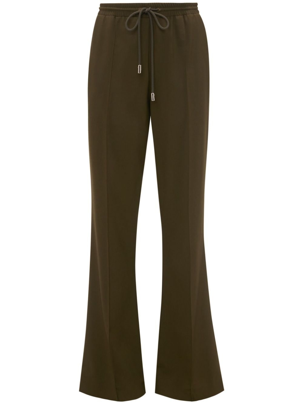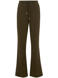 high-waist tailored trousers Highlights - Olive green - Stretch-virgin wool - Raised seam detail - High waist - Elasticated drawstring waistband - Two side slit pockets - Rear welt pocket - Tailored cut - Flared cuffs Made in Italy Composition Virgin Wool 93%, Elastane 7%