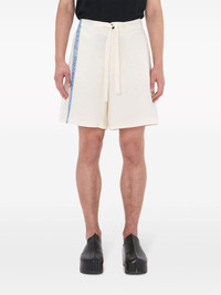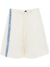 intarsia-logo wide-leg shorts Highlights - Off-white/light blue - Cotton/linen - Intarsia-knit logo - High-waisted - Wide leg - Knee-length - Drawstring waist - Front button fastening - Concealed front fastening - Rear jetted pocket Imported Composition Linen/Flax 50%, Cotton 50% SIZE & FIT Measurement FRONT RISE 12.4 in(31.5 cm) INSIDE LEG 7.87 in(20 cm) HIPS 42.51 in(108 cm)