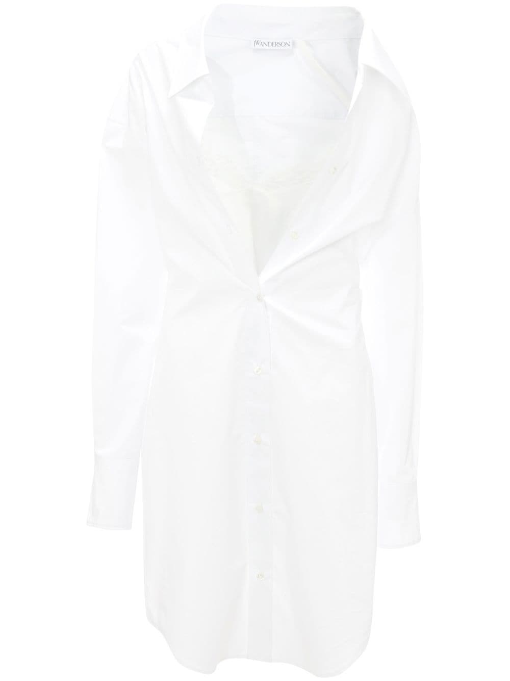 lace-detail shirt dress cloud white cotton lace detailing classic collar front button fastening long sleeves short length Imported Composition Cotton 100%