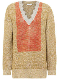 lace-trim jumper Highlights - Yellow/red - Cotton-wool blend - Knitted construction - Colour-block design - V-neck - Lace trim - Long sleeves - Ribbed cuffs and hem Imported Composition Cotton 48%, Wool 34%, Polyamide 18% Washing instructions Read Manufacturer Guidelines