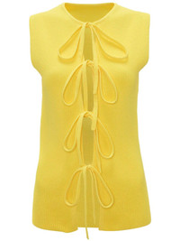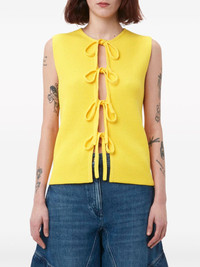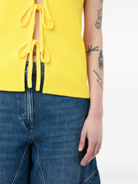lace-up ribbed-knit top Highlights - Yellow - Cotton blend - Ribbed knit - Round neck - Front lace-up fastening - Sleeveless - Straight hem Imported Composition Cotton 50%, Polyester 43%, Polyamide 6%, Elastane 1% Washing instructions Read Manufacturer Guidelines