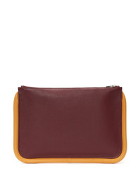 large Bumper leather pouch Highlights - Burgundy/mustard yellow - Calf leather/lambskin - Grained texture - Silver-tone logo lettering - Contrasting border - Top zip fastening - Branded zip puller - Silver-tone hardware - Main compartment Imported Composition Outer: CALFSKIN 80%, Lambskin 20%