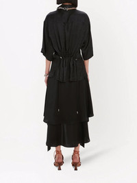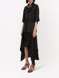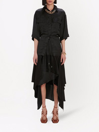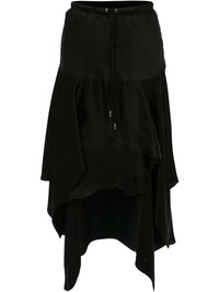 layered asymmetric midi skirt Combining a layered construction with an asymmetric design, this midi skirt showcases JW Anderson's penchant for deconstruction. It is adorned with an all-over logo print in a tonal colourway for a subtle touch of logomania. Imported Composition Viscose 100%