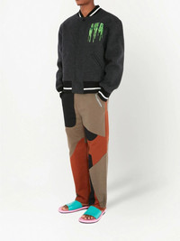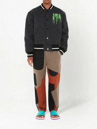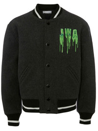 logo-embroidered bomber jacket Taking inspiration from classic varsity styles, this JW Anderson is given a signature playful look with the graphic designs embroidered throughout. On the back, the brand's slime logo and swirl print work together to lend the piece a branded finish. Imported Composition Outer: Wool 75%, Nylon 25%