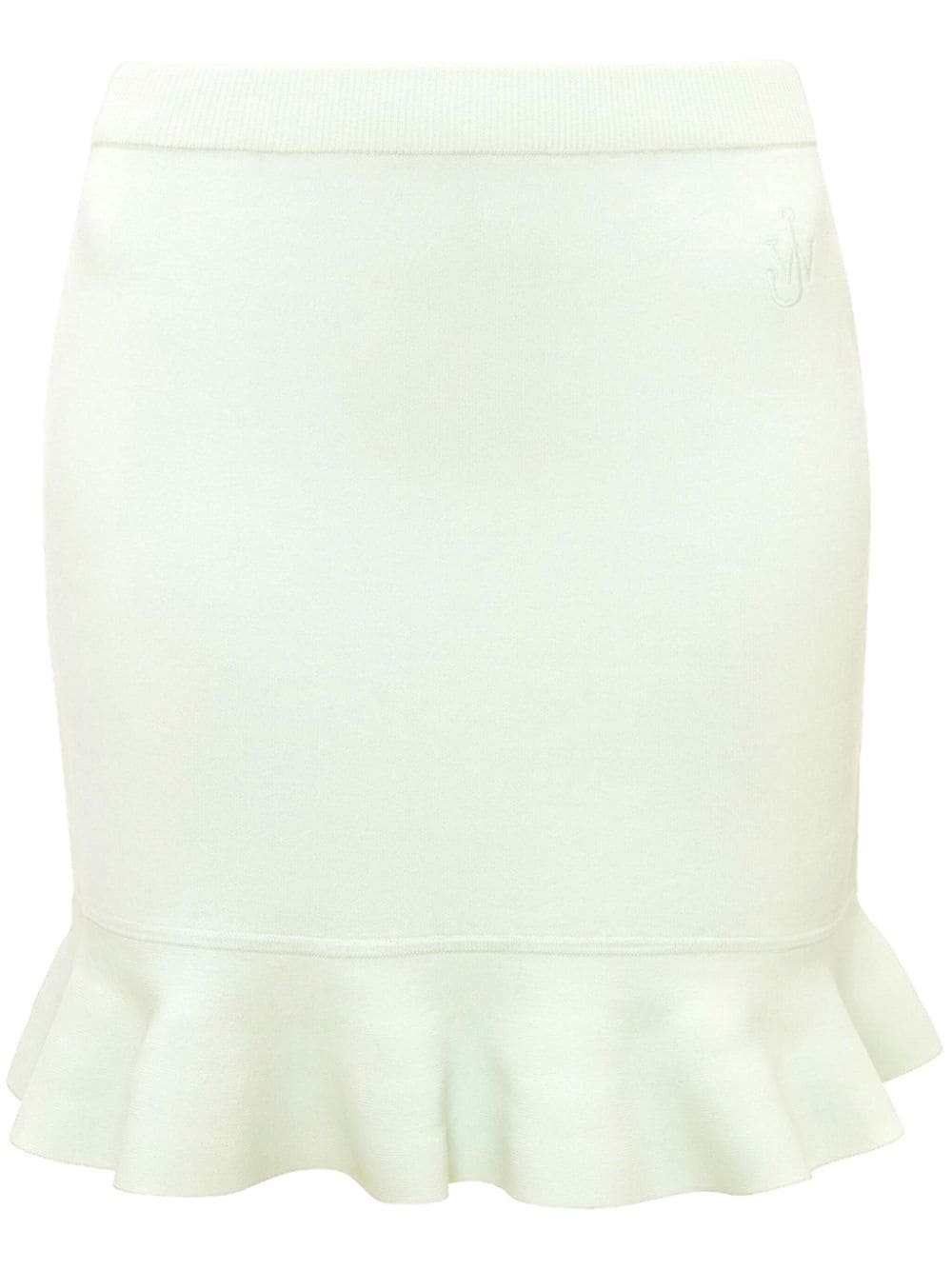 logo-embroidered knitted skirt Highlights - Mint green - Knitted construction - Signature jw-initials anchor logo - Elasticated waistband - Ruffle hem - Mid-rise Imported Composition Viscose 83%, Polyester 17%