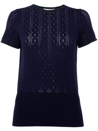 logo-embroidered pointelle top Highlights - Navy blue - Cotton-cashmere blend - Signature jw-initials anchor logo - Pointelle knit - Crew neck - Short sleeves - Ribbed hem Imported Composition Cotton 95%, Cashmere 5% Washing instructions Dry Clean Only