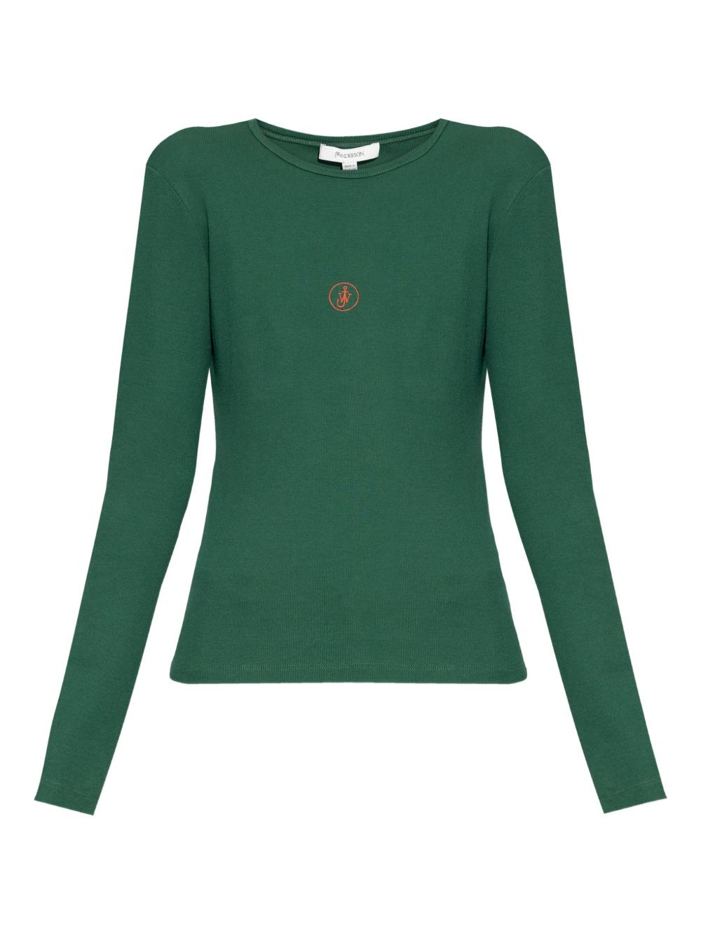 logo-embroidered ribbed top Highlights - Dark green - Ribbed texture - Long sleeves - Round neck - Embroidered logo Imported Composition Cotton 100% Washing instructions Read Manufacturer Guidelines