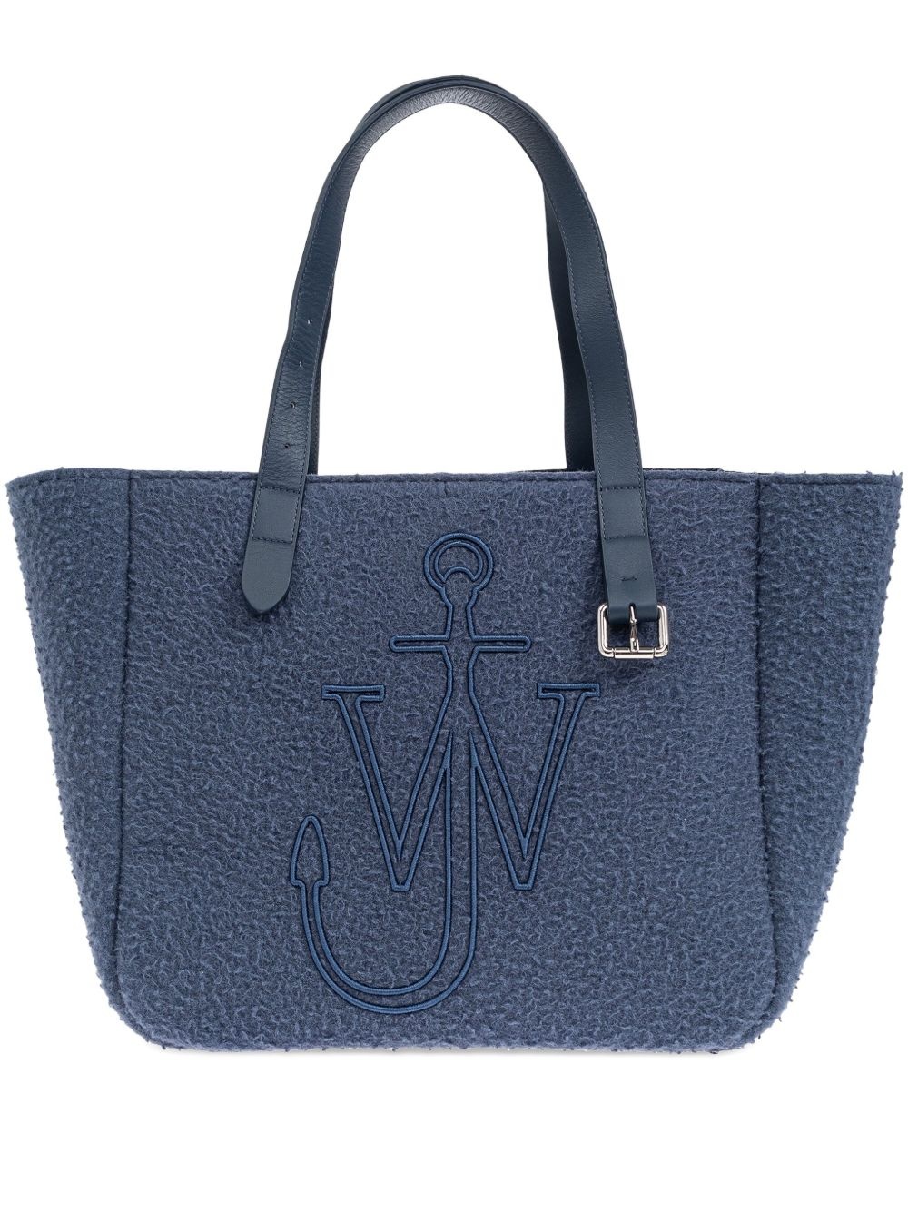 logo-embroidered tote bag Highlights - Navy blue - Textured finish - Embossed logo design - Dual top handles - Spacious interior Imported Composition Outer: Zamak 100%, Wool 90%, Calf Leather 10% SIZE & FIT Measurement DEPTH 8.46 in(21.5 cm) HEIGHT 12 in(30.5 cm) STRAP 9.44 in(24 cm) WIDTH 13.38 in(34 cm)