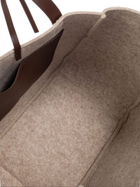 logo-embroidered tote bag Highlights - Beige - Embroidered logo at the front - Two top handles - Main compartment - Internal slit pocket Imported Composition Outer: Wool 100% SIZE & FIT Measurement DEPTH 7.48 in(19 cm) HEIGHT 11.81 in(30 cm) WIDTH 19.68 in(50 cm)