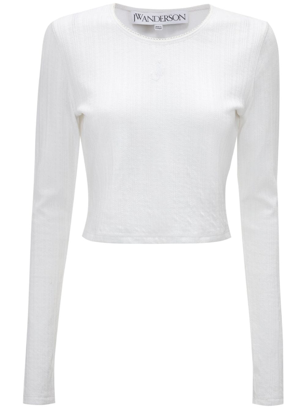 logo-jacquard cotton T-shirt Highlights - White - Cotton - Monogram jacquard - Crew neck - Scallop collar - Long sleeves - Cropped - Straight hem Imported Composition Cotton 100%