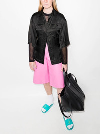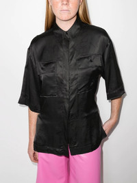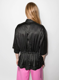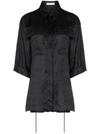 logo-print drawstring shirt JW Anderson updates a classic silhouette with tonal logo printing throughout and a drawstring waist, making for the contemporary design that is usual for the brand. Imported Composition Viscose 100% SIZE & FIT Model measurements Height 5 ft 9 in(1.75 m) Bust/Chest 33.46 in(85 cm) Hips 36.61 in(93 cm) Waist 27.55 in(70 cm) FittingInformation This piece fits true to size. We recommend you get your regular size Cut for a slim fit Made with a lightweight fabric Washing instructions Dry Clean Only